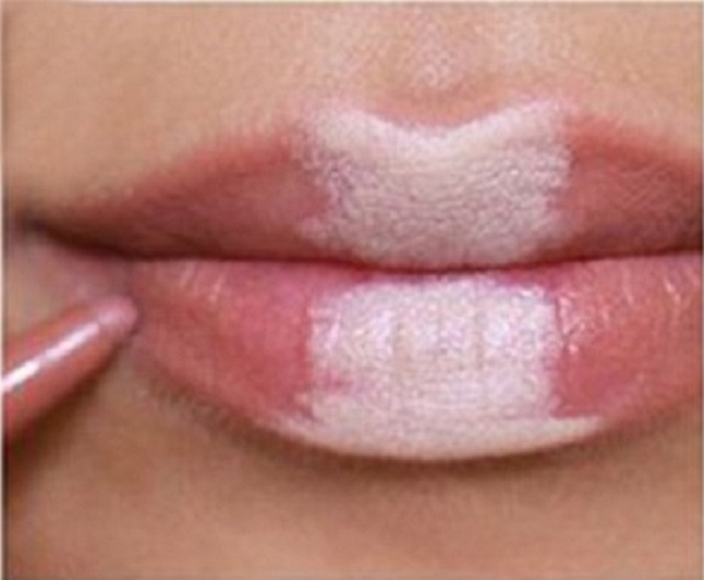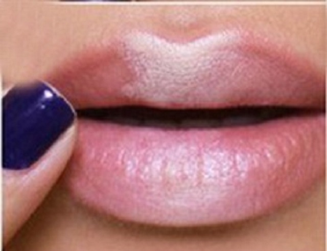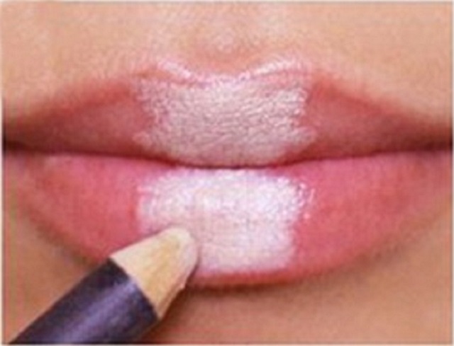 Το μυστικό κρύβεται στο να δώσεις λάμψη στο κέντρο δημιουργώντας ένα απαλό όμπρε εφέ που ξεγελάει το μάτι. Θα χρειαστείς ένα λευκό μολύβι κι ένα nude μολύβι χειλιών, ένα nude λιπ γκλος και το πολύ 10 λεπτά.