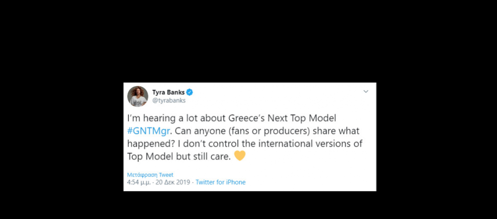 Μετά τον τελικό του GNTM, πολλοί χρήστες του twitter έστειλαν μηνύματα στην Τάιρα Μπανκς, μιας και είναι εκείνη που έχει τα δικαιώματα του America’s Next Top Model.