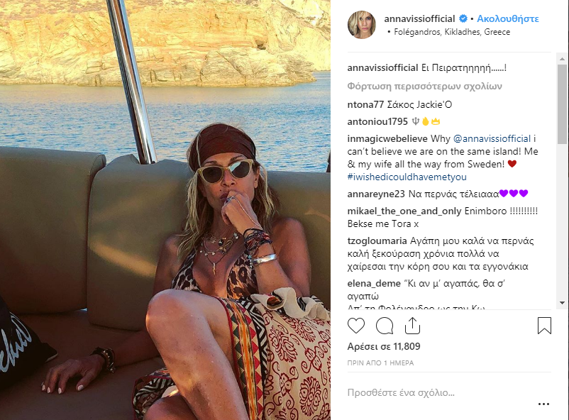 Η Άννα Βίσση συνεχίζει ακάθεκτη τις καλοκαιρινές της διακοπές και βρίσκεται τώρα στη Φολέγανδρο.
