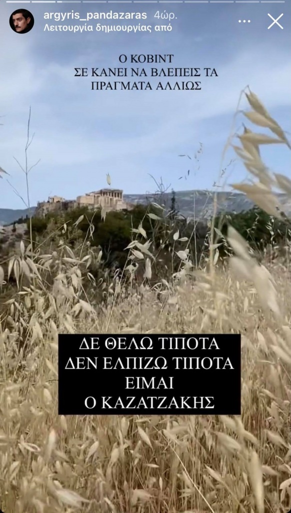 Ο Αργύρης Πανταζάρας έκανε γνωστό με ανάρτησή του πως κόλλησε covid και βρίσκεται καραντίνα εδώ και εννέα ημέρες.
