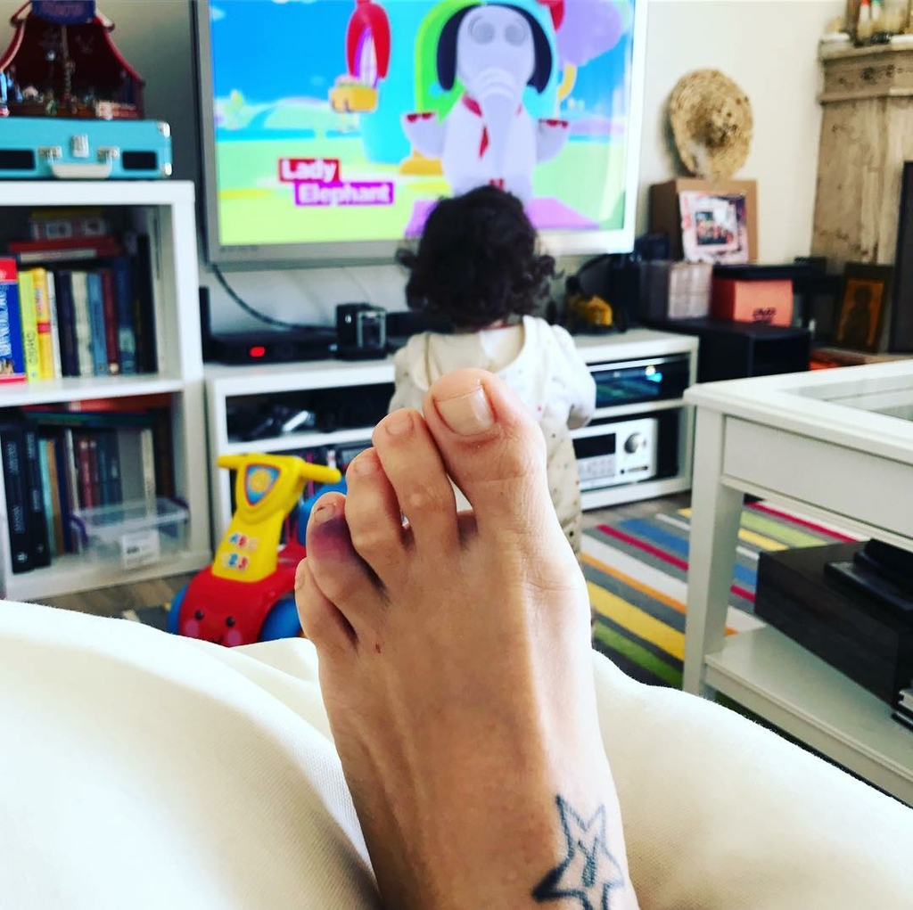 Η ηθοποιός, Κατερίνα Τσάβαλου, περνά στο σπίτι της ξαπλωμένη στον καναπέ και προσέχοντας την μικρή της. Η ίδια πόσταρε μία φωτογραφία στο Instagram.