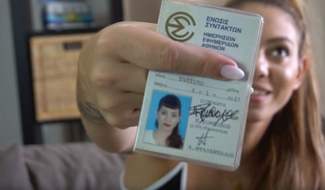 Η δημοσιογράφος μας έδειξε και την ταυτότητα της ΕΣΗΕΑ, η οποία τραβήχτηκε το 2011 όταν είχε ακόμα σκούρα καστανά μαλλιά και αφέλειες.