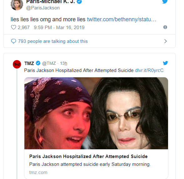 Ωστόσο, η ίδια διέψευσε μέσω twitter το TMZ την είδηση αυτή και έγραψε πως όλα όσα ακούγονται και γράφονται είναι ψέματα.