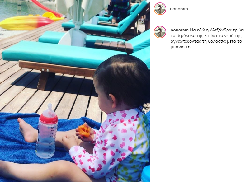 «Να εδώ η Αλεξάνδρα τρώει το βερύκοκο της κ πίνει το νερό της αγναντεύοντας τη θάλασσα μετά το μπάνιο της!», σχολίασε χαρακτηριστικά.