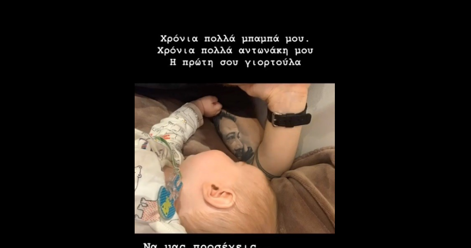 Στη συνέχεια πρόσθεσε τη φράση “Να μας προσέχεις” και έδειξε για ακόμα μια φορά πόσου του λείπει ο πατέρας του.
