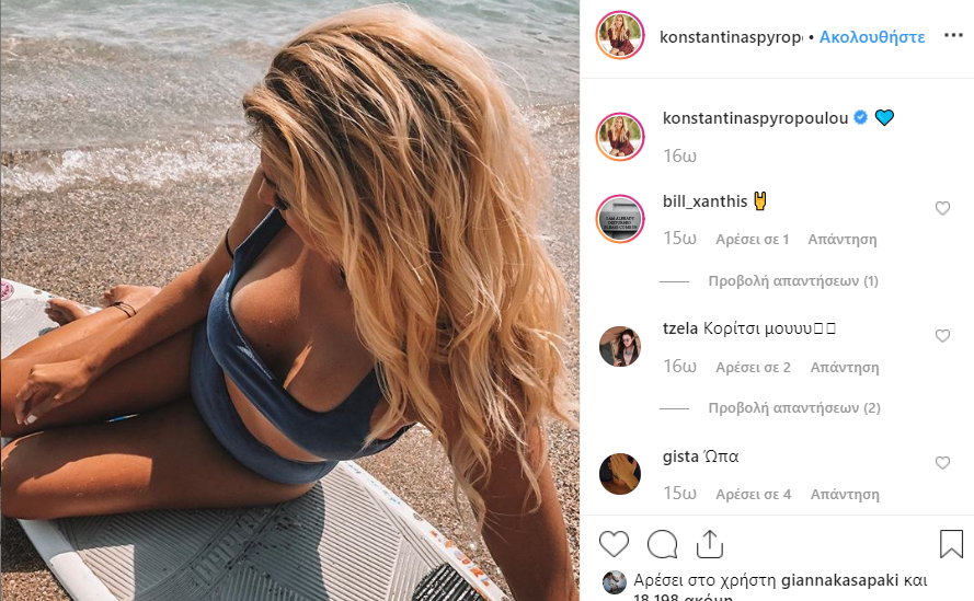 Στη Μύκονο βρέθηκε η Κωνσταντίνα Σπυροοπούλου για ολιγοήμερες διακοπές. Η παρουσιάστρια εκμεταλλεύτηκε τον καλό καιρό και έκανε το μπάνιο της.