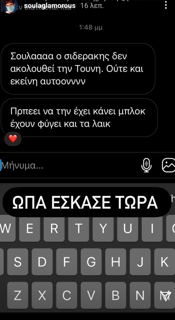 Ωστόσο η Soula Glamorous στο Instagram αποκάλυψε πως δεν ακολουθούν ο ένας τον άλλον στο Instagram, ενώ εξαφανίστηκαν και τα likes που είχαν ανταλλάξει.