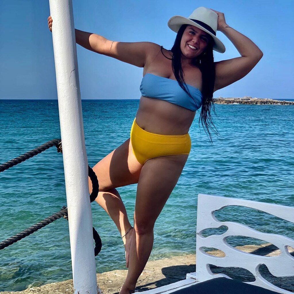 Η ίδια πόσταρε μία φωτογραφία της με μαγιό και σχολίασε στη λεζάντα: «Εμείς το βράδυ παίζουμε Αιγάλεω αλλά εμένα το μυαλό μου είναι κάπου στις Κυκλάδες..•».