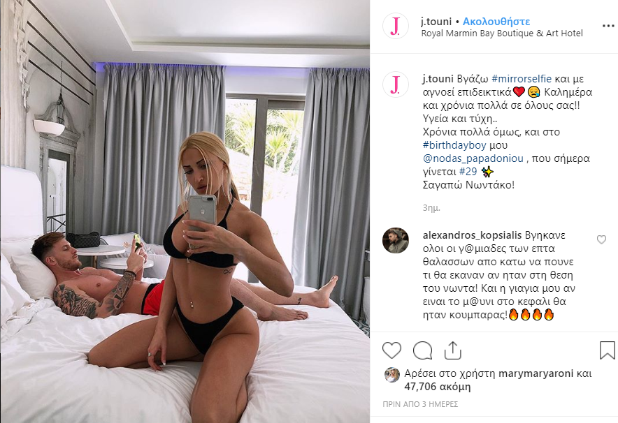Την Κρήτη επέλεξε για τις φετινές της διακοπές και η Ιωάννα Τούνη . Το σέξι μοντέλο πόζαρε από το κρεβάτι του ξενοδοχείου όπου και διαμένει μαζί με τον σύντροφό της.