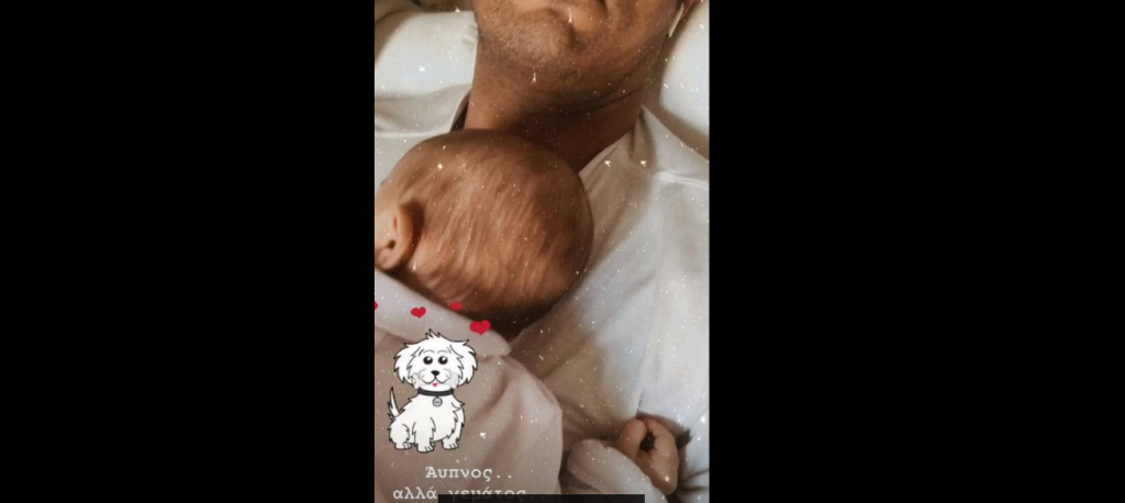 Ο ευτυχισμένος πατέρας πόζαρε με τη μπέμπα στο στήθος του και έγραψε χαρακτηριστικά: “Άυπνος… αλλά γεμάτος!”.
