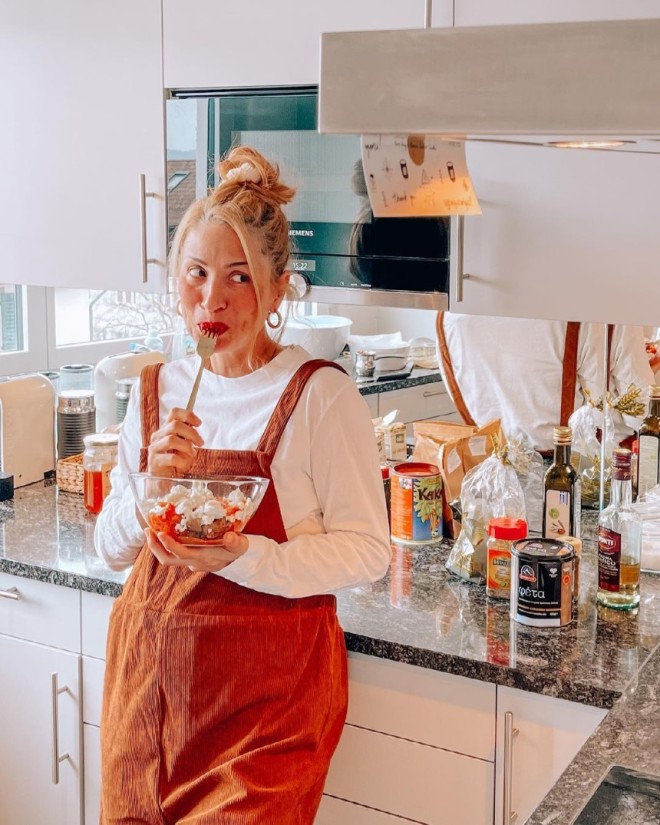 Σε πελάγη ευτυχίας πλέει η Μαρία Ηλιάκη καθώς είναι έγκυος το πρώτο της παιδί. Η Μαρία Ηλιάκη διανύει τον 6ο μήνα της εγκυμοσύνης της και ποζάρει για μας χαμογελαστή στην κουζίνα του σπιτιού της στη Ζυρίχη , κρατώντας στα χέρια της μια σαλάτα ντάκο.