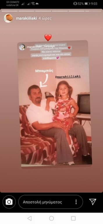 Η Μαρία Ηλιάκη νοστάλγει τα παιδικά της χρόνια όταν ήταν μικρούλα. Η παρουσιάστρια ποζάρει σε παιδική ηλικία και κάθεται στα πόδια του Κρητικού πατέρα της.