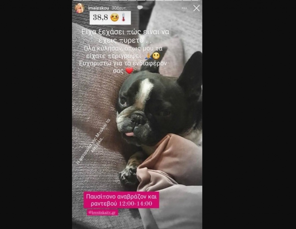 Ωστόσο, Ιωάννα Μαλέσκου με ένα νέο instastory που κοινοποίησε γνωστοποίησε πως ανέβασε πυρετό.