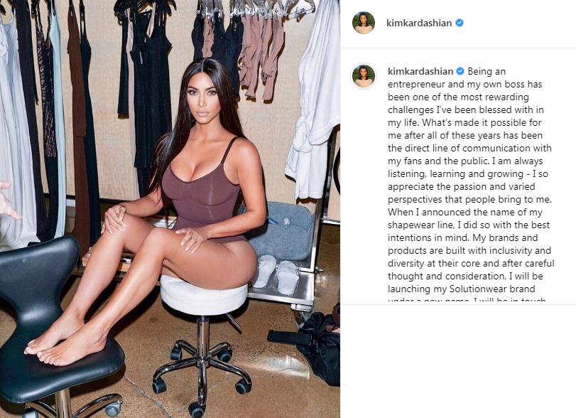 Η Κιμ Kardashian ανακοίνωσε χθες το βράδυ ότι δεν θα ονομάσει τελικά τη νέα σειρά εσωρούχων της Kimono μετά τη θύελλα αντιδράσεων που προκάλεσε στα μέσα κοινωνικής δικτύωσης, με τους χρήστες να την κατηγορούν για πολιτισμική ιδιοποίηση.