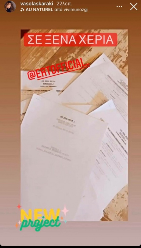 Η Βάσω Λασκαράκη θα πρωταγωνιστήσει στη σειρά «Σε Ξένα Χέρια» σε παραγωγή Γιάννη Καραγιάννη και θα προβάλλεται στην ΕΡΤ. Μάλιστα, η ίδια το επιβεβαιώσε με ανάρτησή της στο Instagram.