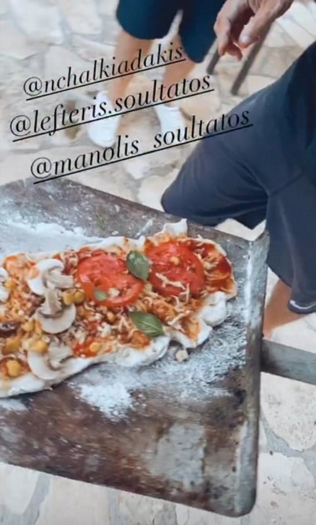 Μάλιστα έκαναν ένα τραπέζι στην αυλή τους σπιτιού τους για τους φίλους τους και όλοι μαζί έψησαν πίτσα στον ξυλόφουρνο μαζί με την παρέα τους.