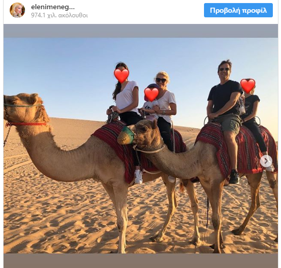 “οι διακοπές μας τελειώνουν γεμάτες αναμνήσεις και νέες εμπειρίες”, έγραψε η παρουσιάστρια και τους βλέπουμε να ποζάρουν όλοι μαζί πάνω στις καμήλες.