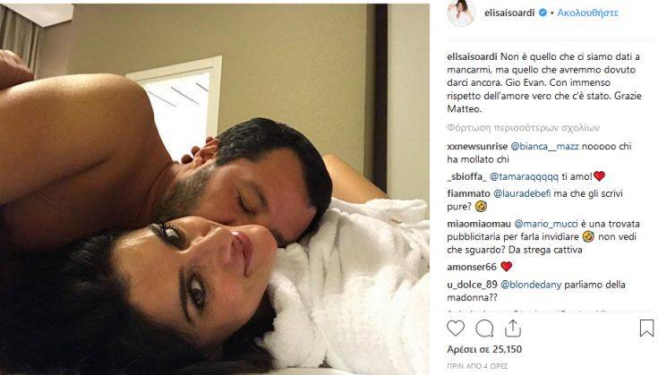 Η ίδια δημοσίευσε μία κοινή τους φωτογραφία και σχολίασε: «"Δεν είναι που κάναμε μαζί πράγματα που θα μου λείψουν, αλλά αυτά που έπρεπε να κάνουμε", Gio Evan. Με τεράστιο σεβασμό για την αληθινή αγάπη που ζήσαμε. Ευχαριστώ Ματέο».