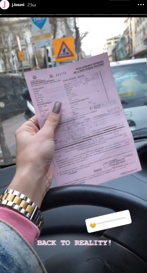 Η ίδια ανέβασε το «ραβασάκι» της αστυνομίας στο προφίλ της στο Instagram για να ενημερώσει τους διαδικτυακούς της φίλους.