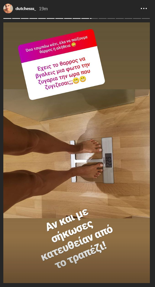 Η ίδια είναι 62,2 κιλά. Μάλιστα, δεν δίστασε να μας δείξει τη ζυγαριά της: