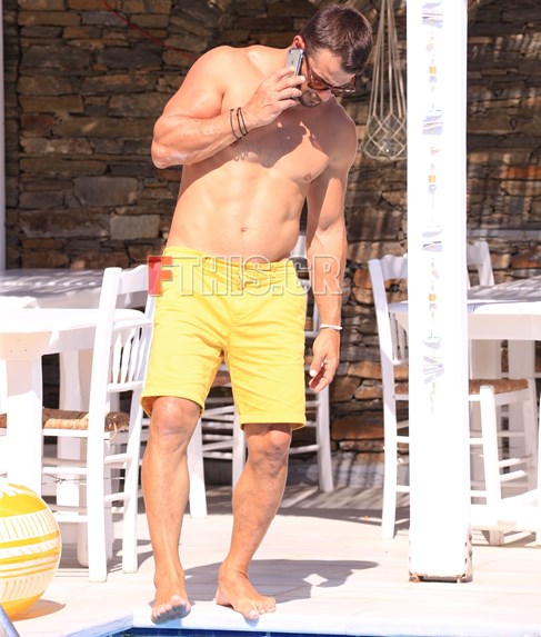Φορώντας μια κίτρινη βερμούδα και χωρίς μπλούζα, μάλιστα, κατάφερε να μαγνητίσει πάνω του όλα τα βλέμματα και όχι άδικα, αφού διαθέτει ένα άκρως εντυπωσιακό κορμί.
