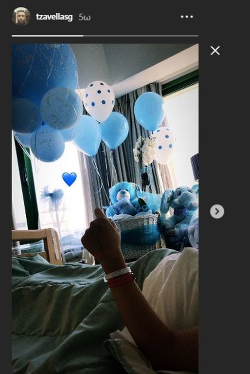 Μάλιστα, ο ποδοσφαιριστής πόσταρε και την πρώτη φωτογραφία μέσα από το μαιευτήριο το οποίο έχει γεμίσει δώρα φίλων.