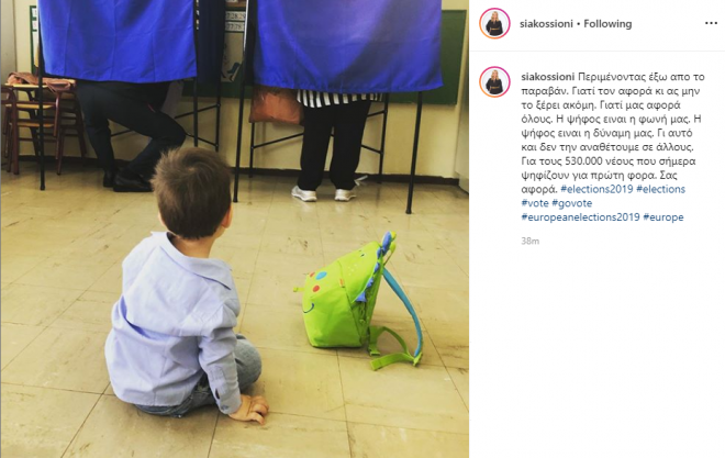 «Περιμένοντας έξω από το παραβάν. Γιατί τον αφορά κι ας μην το ξέρει ακόμη. Γιατί μας αφορά όλους. Η ψήφος είναι η φωνή μας. Η ψήφος είναι η δύναμη μας. Γι’ αυτό και δεν την αναθέτουμε σε άλλους. Για τους 530.000 νέους που σήμερα ψηφίζουν για πρώτη φορά. Σας αφορά», ήταν το σχόλιο της.