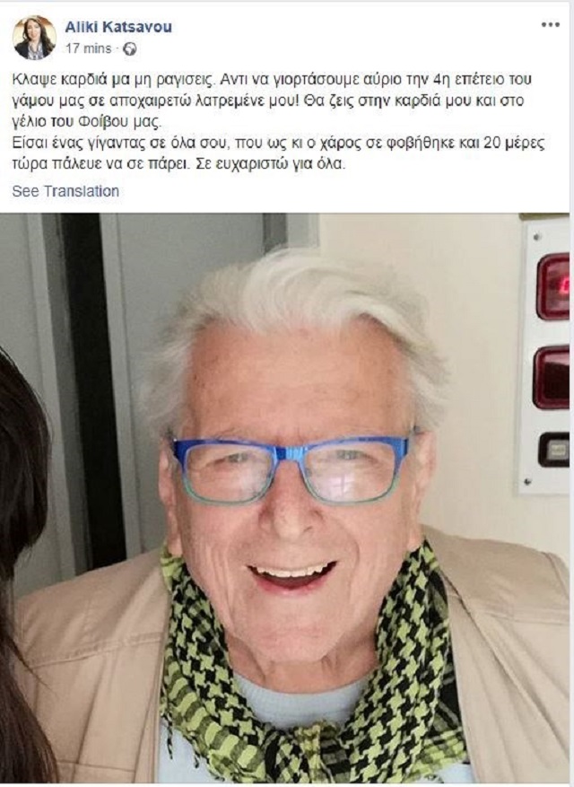 Ο πολιτικός και καλλιτεχνικός κόσμος τον αποχαιρετά με τα πιο όμορφα λόγια. Η σύζυγός του Αλίκη Κατσαβού έγραψε ένα συγκινητικό μήνυμα για τον αγαπημένο της που έφυγε από τη ζωή μια μέρα πριν την 4η επέτειο του γάμου τους.