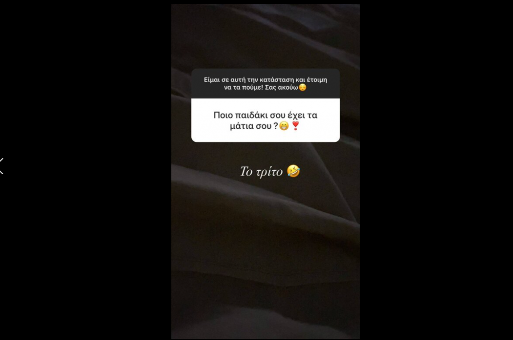 Η παρουσιάστρια εμμέσως πλην σαφώς έκανε αναφορά στο Instagram για τρίτη εγκυμοσύνη. Και αν δεν είναι ήδη, τότε απλά έκανε μια αναφορά μελλοντική πως θα ήθελε τρίτο παιδάκι για να πάρει και τα μάτια της, που πραγματικά είναι φανταστικά με την ιδιαιτερότητά τους.