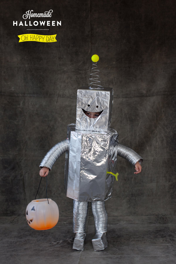 Λίγο πιο απαιτητική είναι αυτή η στολή αλλά είναι εξίσου υπέροχη και σίγουρα θα εντυπωσιάσει και εμάς και το παιδί μας. Χρειαζόμαστε 2 κούτες, μια μεγάλη για να γίνει το σώμα του ρομπότ και μια πιο μικρή για το κεφάλι, πολύ αλουμινόχαρτο και μεταλλικούς σωλήνες του απορροφητήρα. Παίρνουμε την μεγάλη κούτα και την ενώνουμε με ταινία από τις ανοιχτέ πλευρές της. Έπειτα, ανοίγουμε τρύπες για να περάσουν τα χέρια και τα πόδια του μικρού μας και «ντύνουμε» την κούτα με αλουμινόχαρτο. Στη συνέχεια, παίρνουμε την μικρή κούτα, που θα γίνει το κεφάλι και, αφού την περιτυλίξουμε με αλουμινόχαρτο, ανοίγουμε τρύπες για τα μάτια και το στόμα. Τους σωλήνες τους ράβουμε με μια χοντρή βελόνα, αντί για χέρια και για πόδια. Απλά, προσέχουμε τις άκρες τους, γιατί είναι ιδιαίτερα κοφτερές. Για να προστατεύσουμε τα παιδιά μας από τυχόν τραυματισμούς, περνάμε τις άκρες με κολλητική ταινία.