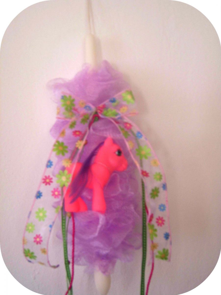 - Μια ακόμα έξυπνη πρόταση είναι οι λαμπάδες που έχουν ως βάση τα σφουγγάρια! Αυτά που είναι σαν δίχτυ. Αφού λύσετε τις άκρες τους και περάσετε από μέσα τις λαμπάδες, στερέωσε τα σφουγγάρια στο ύψος που θέλετε. Κατόπιν διακοσμήστε με παιχνίδια, κορδέλες, πεταλουδίτσες και χάντρες, αλλά και χειροποίητα υφασμάτινα στοιχεία.