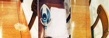- Αν έχετε λευκά σημάδια θερμότητας στα έπιπλά σας, πάρτε διάφορα υφάσματα και ψεκάστε τα με νερό. Βάλτε τα πάνω από το λεκέ και στη συνέχεια σιδερώστε τα για περίπου 15 δευτερόλεπτα.