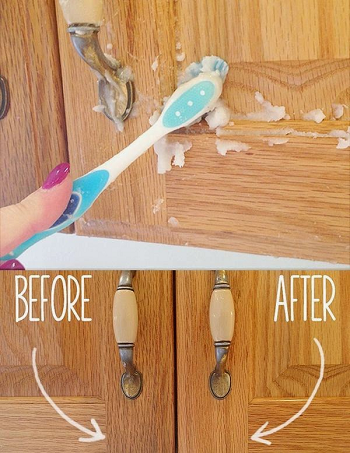 - Είναι γνωστό ότι στα ντουλάπια της κουζίνας συσσωρεύεται βρωμιά και μικρόβια. Μπορείτε να διορθώσετε το πρόβλημα αυτό με σπιτικό καθαριστικό. Αναμίξετε μία δόση ελαιόλαδου και δύο δόσεις μαγειρικής σόδας και χρησιμοποιήστε μία παλιά οδοντόβουρτσα για να καθαρίσετε τα ντουλάπια και τις σχισμές τους.
