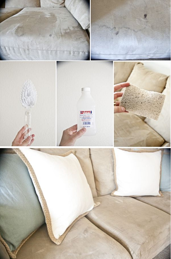 - Για να καθαρίσετε ένα βρώμικο καναπέ μικροΐνων χρειάζεστε ένα άσπρο σφουγγάρι και αλκοόλ. Ψεκάστε με το αλκοόλ τη λεκιασμένη περιοχή και στη συνέχεια τρίψτε καλά με το σφουγγάρι. Αφήστε να στεγνώσει. Στη συνέχεια τρίψτε με μία βούρτσα τη περιοχή.