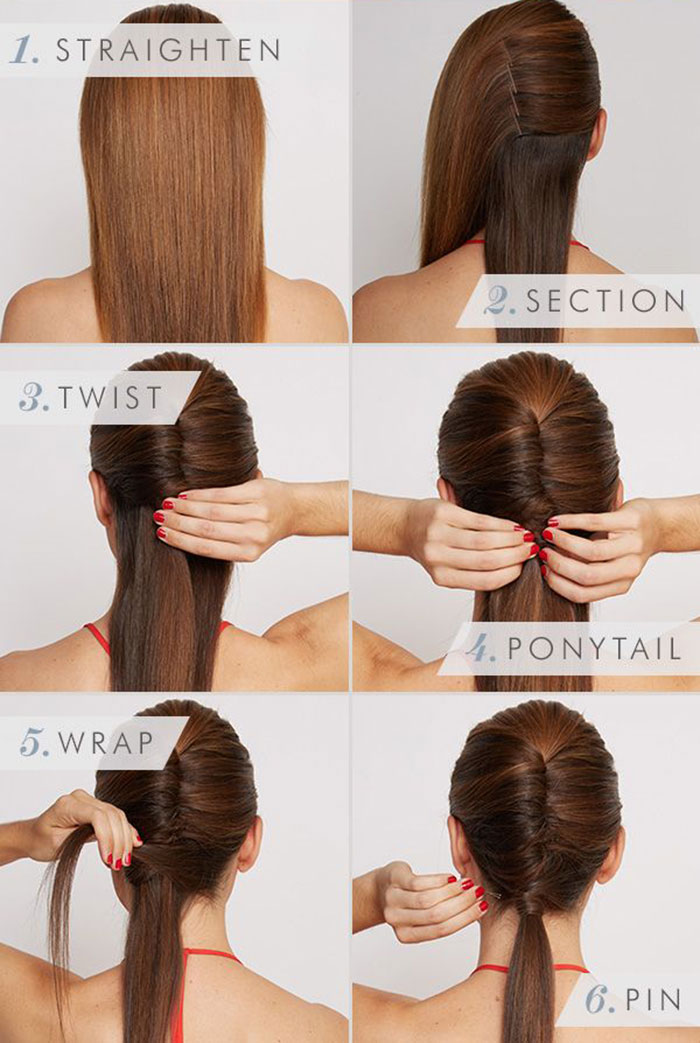 - Μαζέψτε τα υπόλοιπα μαλλιά σας επίσης σε αλογοουρά, παίρνοντας μία τούφα και γυρνώντας την γύρω από την κοτσίδα.