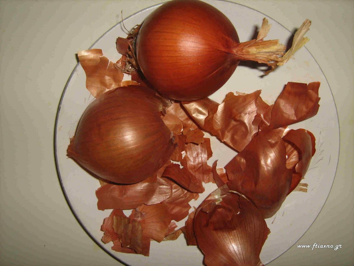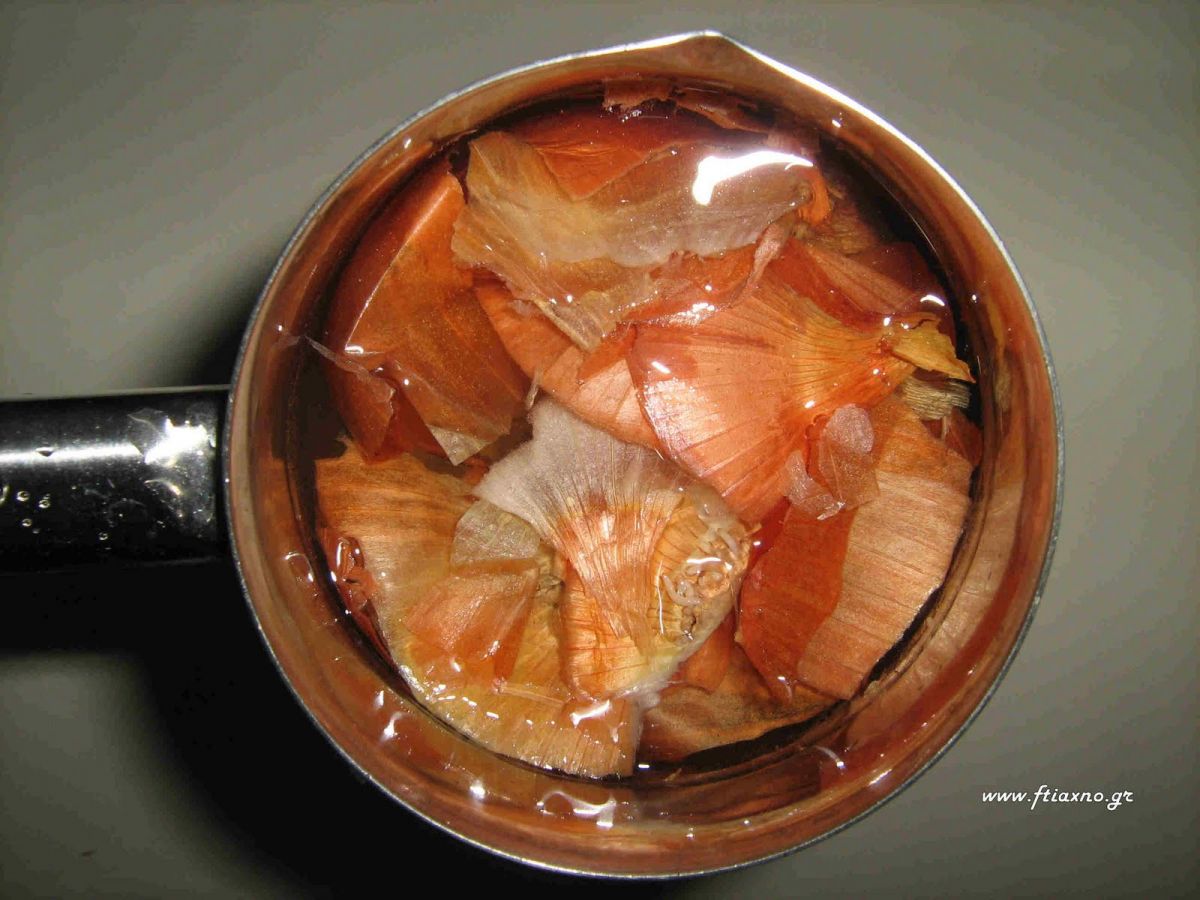 - Προσθέτουμε ένα φλιτζανάκι ξύδι στο νερό μας και τις εξωτερικές φλούδες από 10 μεγάλα κρεμμύδια.