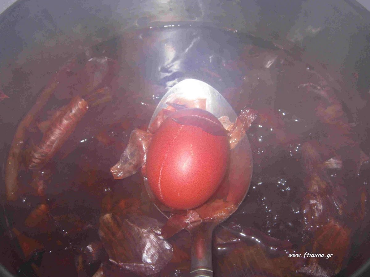 - Τα αυγά συνεχίζουν να παίρνουν πιο έντονο χρώμα μέσα στο ζεστό νερό.