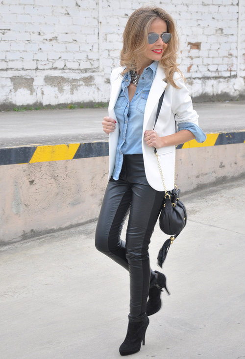 - Με δερμάτινο παντελόνι