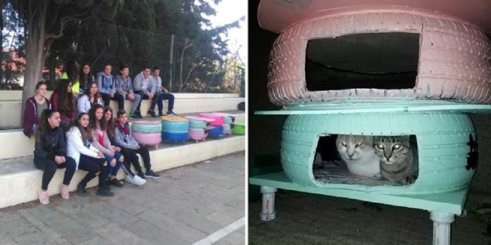 Μια όμορφη ιδέα που συνεχίζεται από παλιά λάστιχα αυτοκινήτου που συνήθως απλά τα πετάμε και μολύνουμε το περιβάλλον, τα έκαναν πανέμορφα καταφύγια για τις γάτες!!!