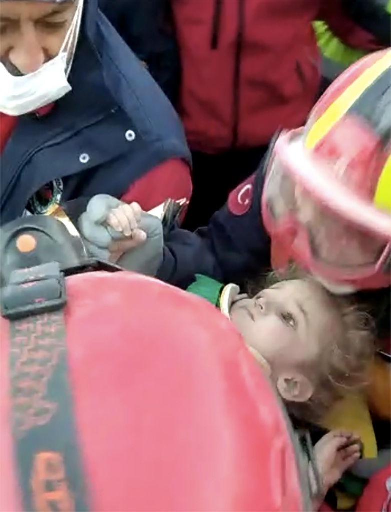 Μετά την διάσωση της 14χρονης Ιντίλ μετά από 58ώρες που βρισκόταν τα συντρίμμια που όμως δεν τα κατάφερε και εξέπνευσε, τα σωστικά συνεργεία στην Σμύρνη έσωσαν και ένα 3χρονο κοριτσάκι μετά από 65 ολόκληρες ώρες!