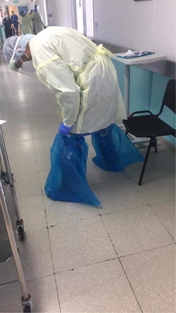 Σε ανάρτηση του στο facebook ο δρ. Ελευθερίου καταγγέλλει έλλειψη προστατευτικού εξοπλισμού για το προσωπικό στον θάλαμο ύποπτων περιστατικών κορωνοϊού ενώ δημοσιοποιεί φωτογραφίες που παρουσιάζουν γιατρούς να επιχειρούν να προστατευτούν με σακούλες σκουπιδιών…
