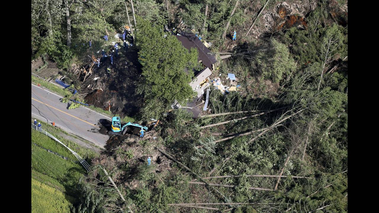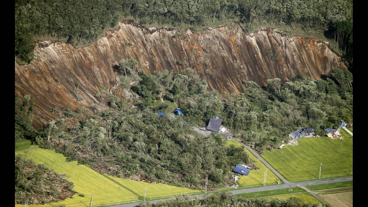 Πλάνα που τραβήχτηκαν από αέρος αποκάλυψαν ότι ο σεισμός προκάλεσε δεκάδες κατολισθήσεις κοντά στην πόλη Ατσούμα, στο νότιο Χοκάιντο, ορισμένες από τις οποίες καταπλάκωσαν σπίτια.