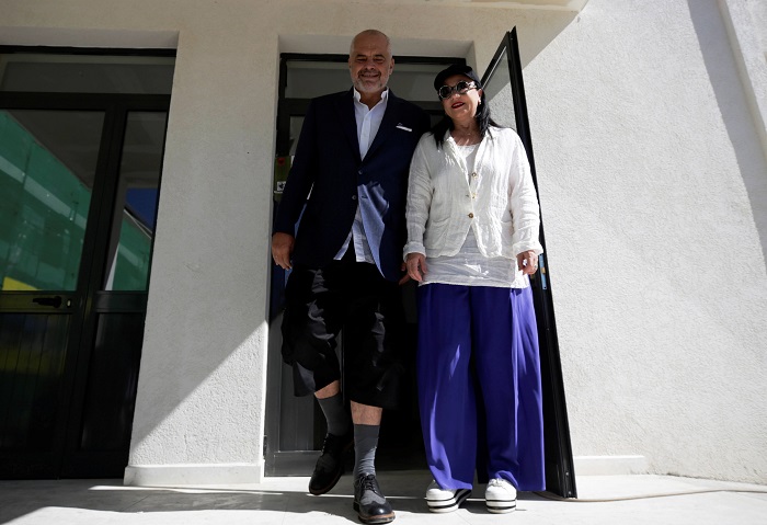 Με αυτήν την αμφίεση και έχοντας στο πλευρό του την σύζυγό του, Λίντα, ο Έντι Ράμα πήγε στο εκλογικό κέντρο του Surrel, γεγονός το οποίο σκόρπισε πανικό στα social media.