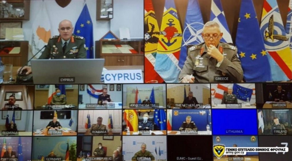Πραγματοποιήθηκε σήμερα, με τηλεδιάσκεψη, η Σύνοδος της Στρατιωτικής Επιτροπής της Ευρωπαϊκής Ένωσης (EUMC) σε επίπεδο Αρχηγών Ενόπλων Δυνάμεων (ΕΔ) των Κρατών Μελών (ΚΜ), με τη συμμετοχή του Αρχηγού της Εθνικής Φρουράς (ΕΦ), Αντιστράτηγου Δημόκριτου Ζερβάκη.