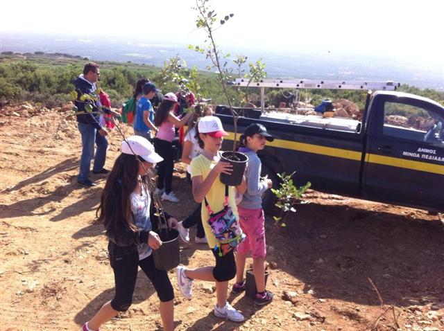 Στο πλαίσιο των εργασιών κατασκευής του έργου, πραγματοποιήθηκε χθες και δράση δεντροφύτευσης με πρωτοβουλία του Δήμου Μινώα Πεδιάδας και συμμετοχή μαθητών του 2ου Δημοτικού Σχολείου Αρκαλοχωρίου. Ο χώρος περιμετρικά της δεξαμενής διαμορφώθηκε και φυτέφθηκε, ενώ παράλληλα στα παιδιά έγινε ενημέρωση περιβαλλοντικής ευαισθητοποίησης. Η συγκεκριμένη δράση συνδυάστηκε και με τον εορτασμό της Παγκόσμιας Ημέρας Περιβάλλοντος.
