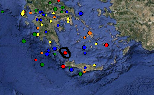 Πρωινή επίσκεψη έκανε ο εγκέλαδος στην δυτική Κρήτη καθώς στις 07.29 το πρωί σημειώθηκε σεισμική δόνηση 77 χιλιόμετρα Βορειοδυτικά των Χανίων. Σύμφωνα με την εκτίμηση του Ευρωμεσογειακού Σεισμολογικού Ινστιτούτου, το μέγεθος του σεισμού ήταν 3,4 βαθμοί της κλίμακας Ρίχτερ και το εστιακό βάθος εντοπίζεται στα 2 χιλιόμετρα.