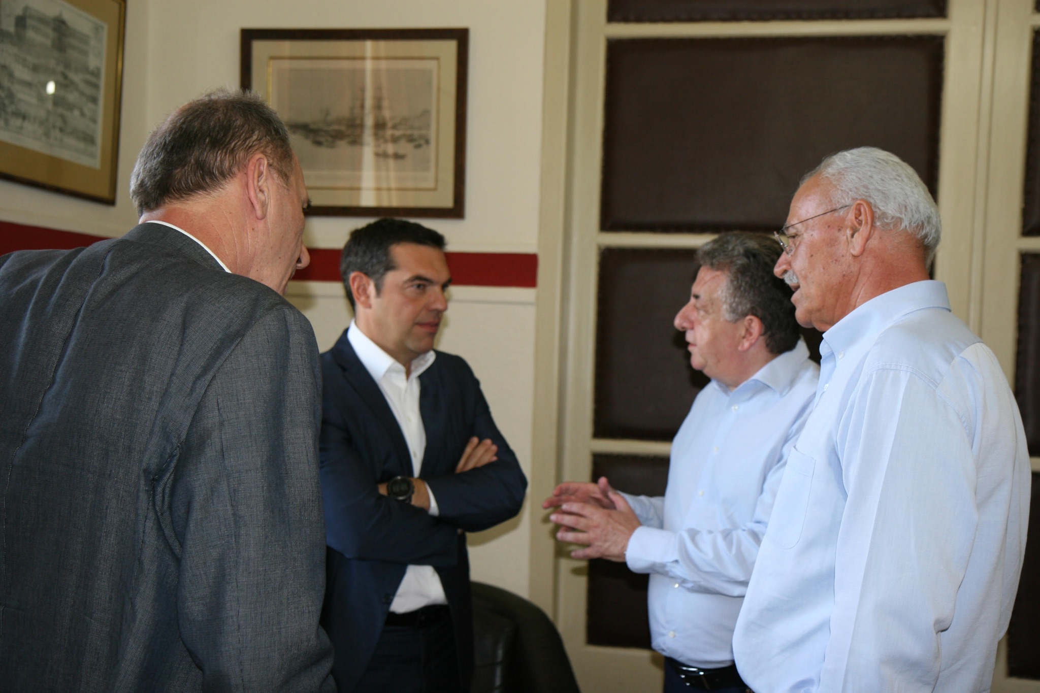 Στο κτίριο της Περιφέρειας στα Χανιά τον πρωθυπουργό υποδέχθηκαν ο Περιφερειάρχης Σταύρος Αρναουτάκης και ο Αντιπεριφερειάρχης Χανίων Απόστολος Βουλγαράκης, ο Αντιπεριφερειάρχης Νίκος Καλογερής κι άλλα στελέχη της Περιφέρειας.