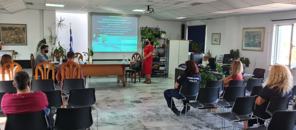 Από τη Γενική Περιφερειακή Αστυνομική Διεύθυνση Κρήτης, διοργανώθηκε, μέσω τηλεκπαίδευσης, το διήμερο 14 & 15 Σεπτεμβρίου, εκπαιδευτικό πρόγραμμα επιμόρφωσης αστυνομικού προσωπικού με αντικείμενο το νομοθετικό πλαίσιο για την αντιμετώπιση της ενδοοικογενειακής βίας και την προστασία των θυμάτων.