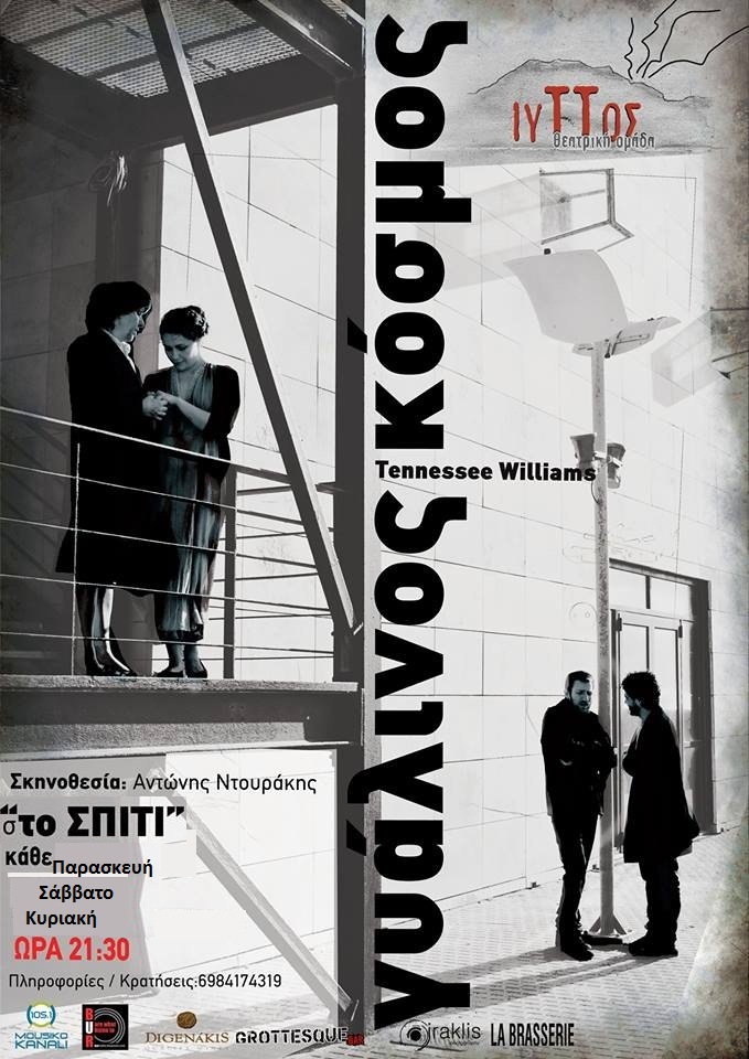 Η θεατρική παράσταση "Γυάλινος Κόσμος" του Τένεσι Ουίλιαμς από την θεατρική ομάδα “Ιυττός” θα συνεχιστεί έως Κυριακή 1 Ιουνίου 2014 και κάθε Παρασκευή Σάββατο Κυριακή στις 21:30. Η παράσταση θα πραγματοποιηθεί σε μονοκατοικία στην περιοχή της Αγίας Τριάδας, όπου ο θεατής παρακολουθεί το έργο μέσα στους χώρους του σπιτιού.