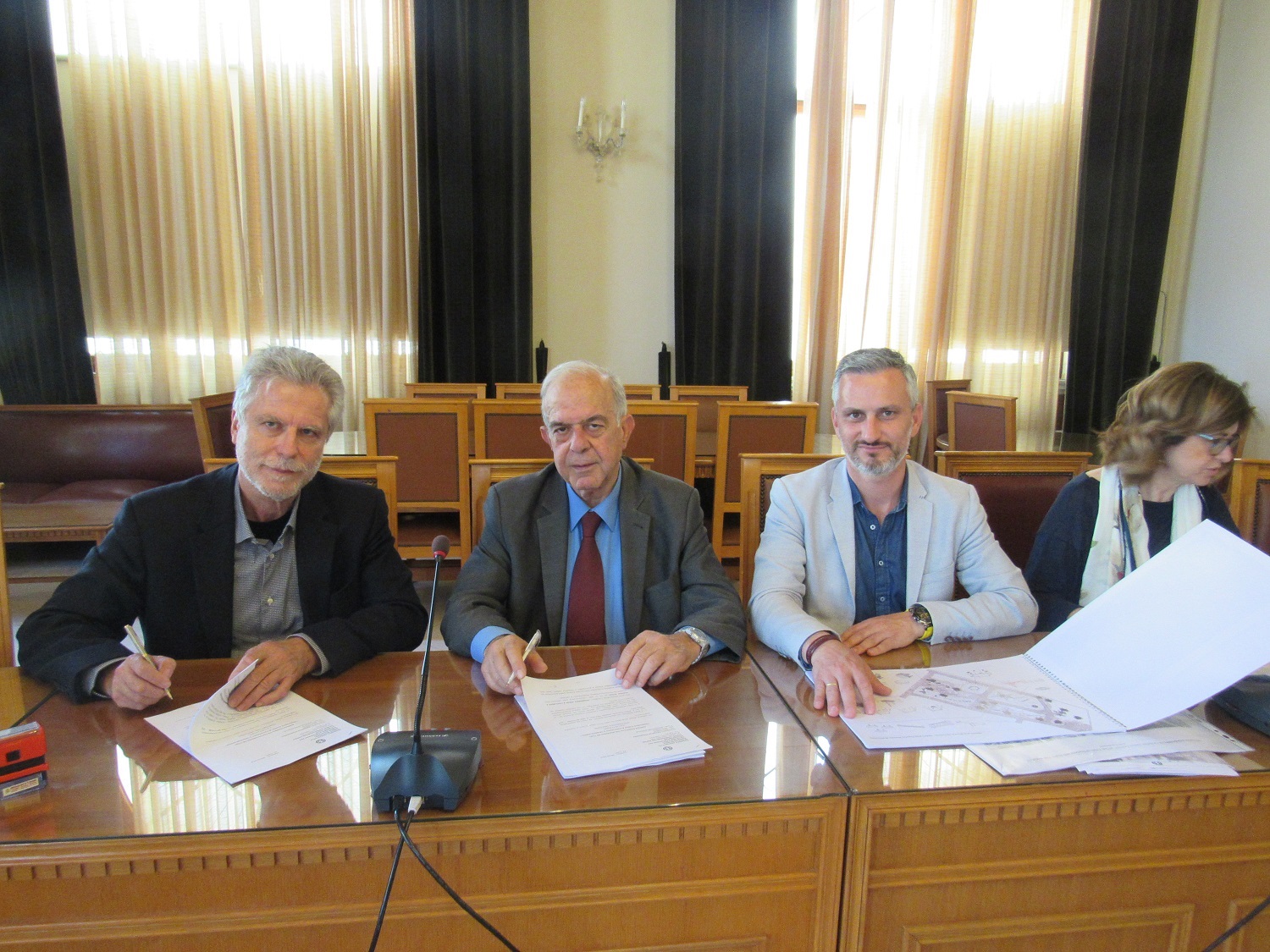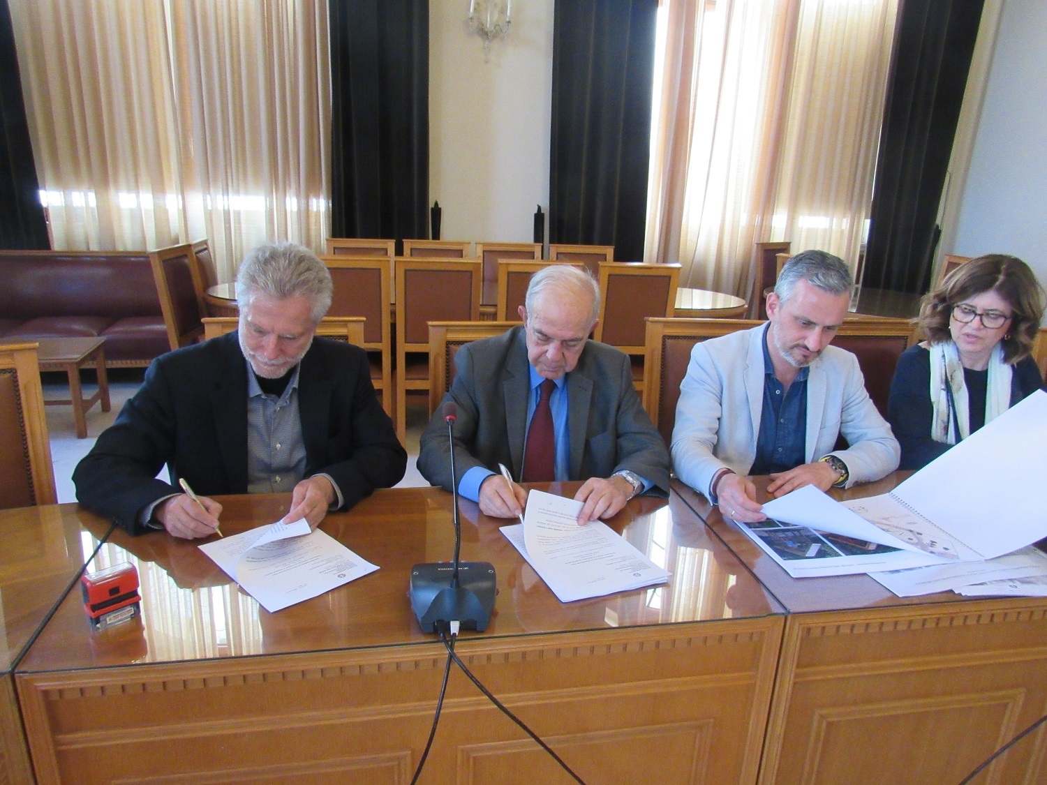Υπεγράφη σήμερα, Τετάρτη 8 Μαΐου 2019 στην Λότζια η σύμβαση για την κατασκευή έξι χώρων αναψυχής και παιγνιδιού για παιδιά στα Ενετικά Τείχη και την Κνωσό, του Δήμου Ηρακλείου. Τη σύμβαση υπέγραψε ο Δήμαρχος Ηρακλείου Βασίλης Λαμπρινός, παρουσία του Αντιδημάρχου Τεχνικών Έργων Γιάννη Αναστασάκη, με τον εκπρόσωπο της αναδόχου εταιρίας.